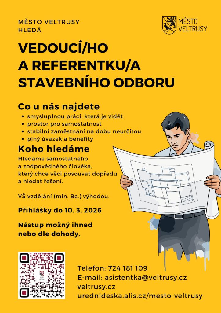 Město Veltrusy hledá vedoucí/ho a referentku/a stavebního odboru.