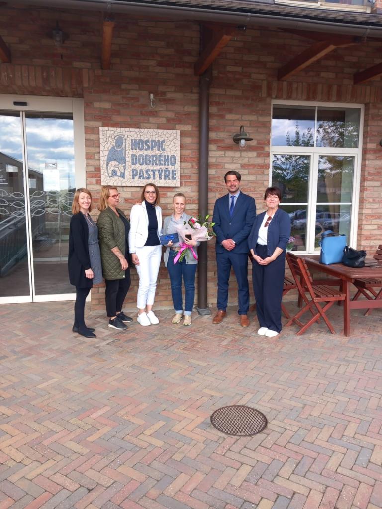 Teď už zbýval poslední dílek – návštěva hospice a předání finančního daru, který putoval na provozní účet - z hlediska užití pro organizaci je nejvíce disponibilní a bývá využíván tam, kde je aktuálně nejvíce zapotřebí, tedy na úhradu nejurgentnějších nákladů, dofinancování spoluúčastí dotačních řízení, úhradu mezd apod.