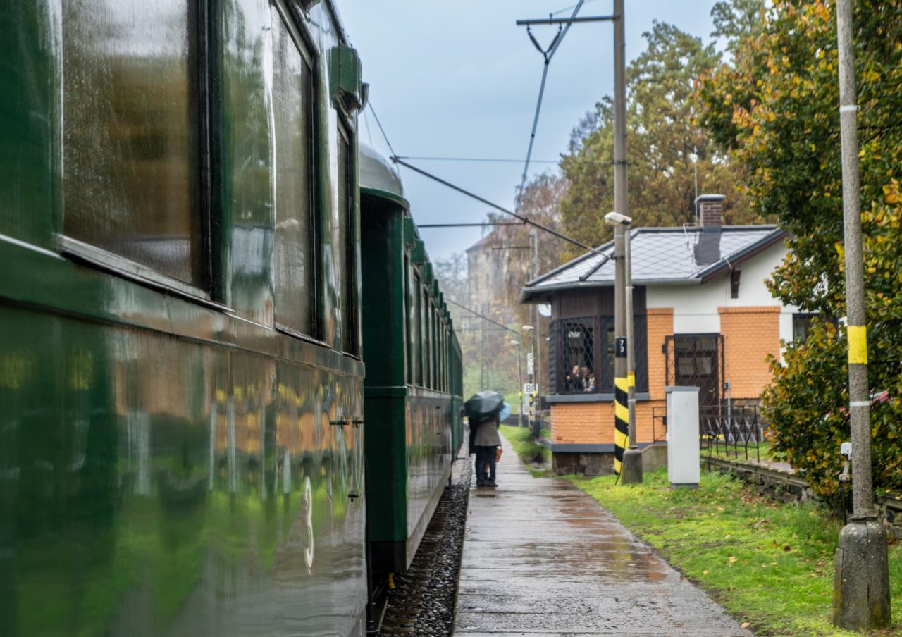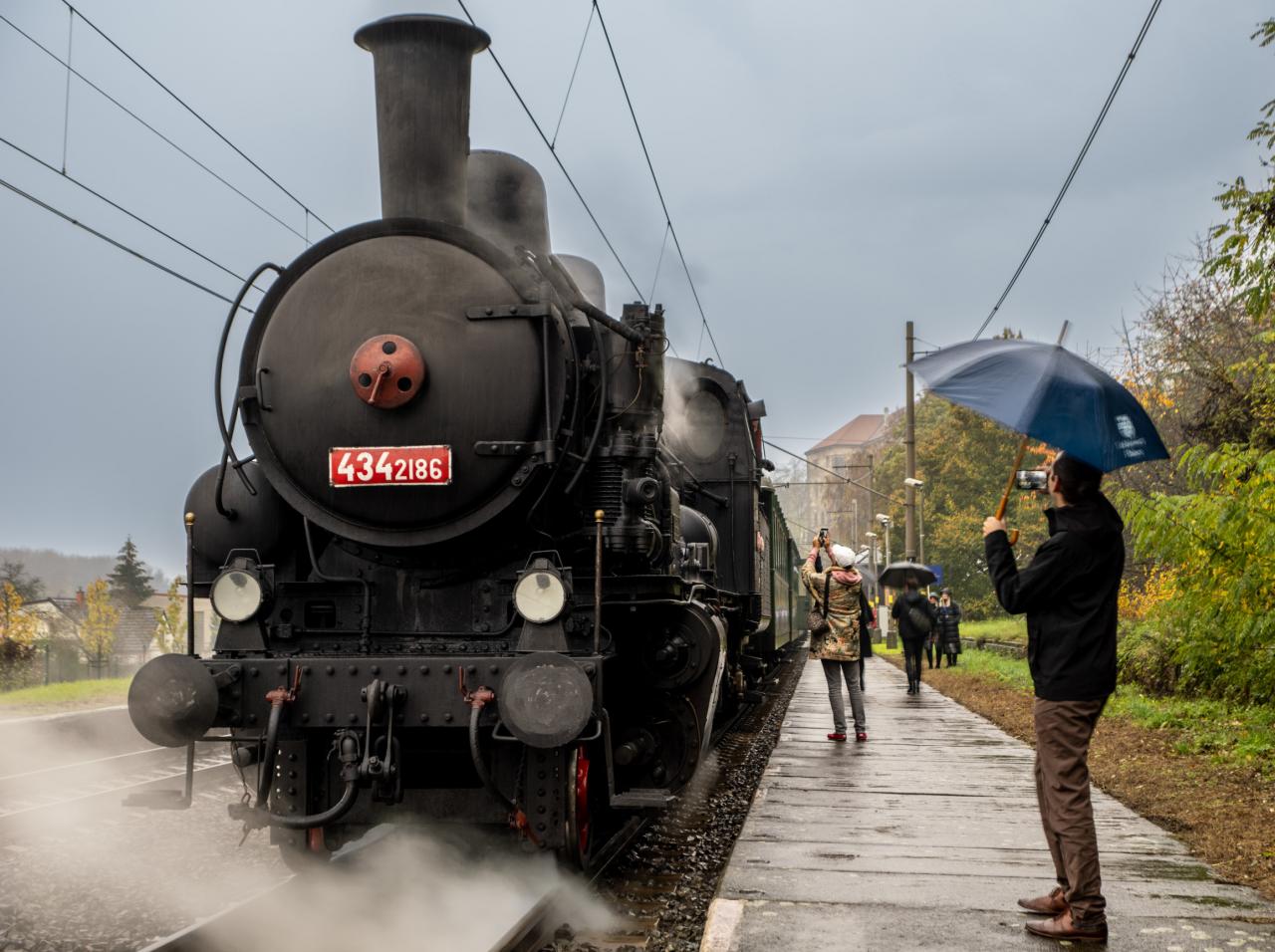 Parní vlak projíždějící Nelahozevsí