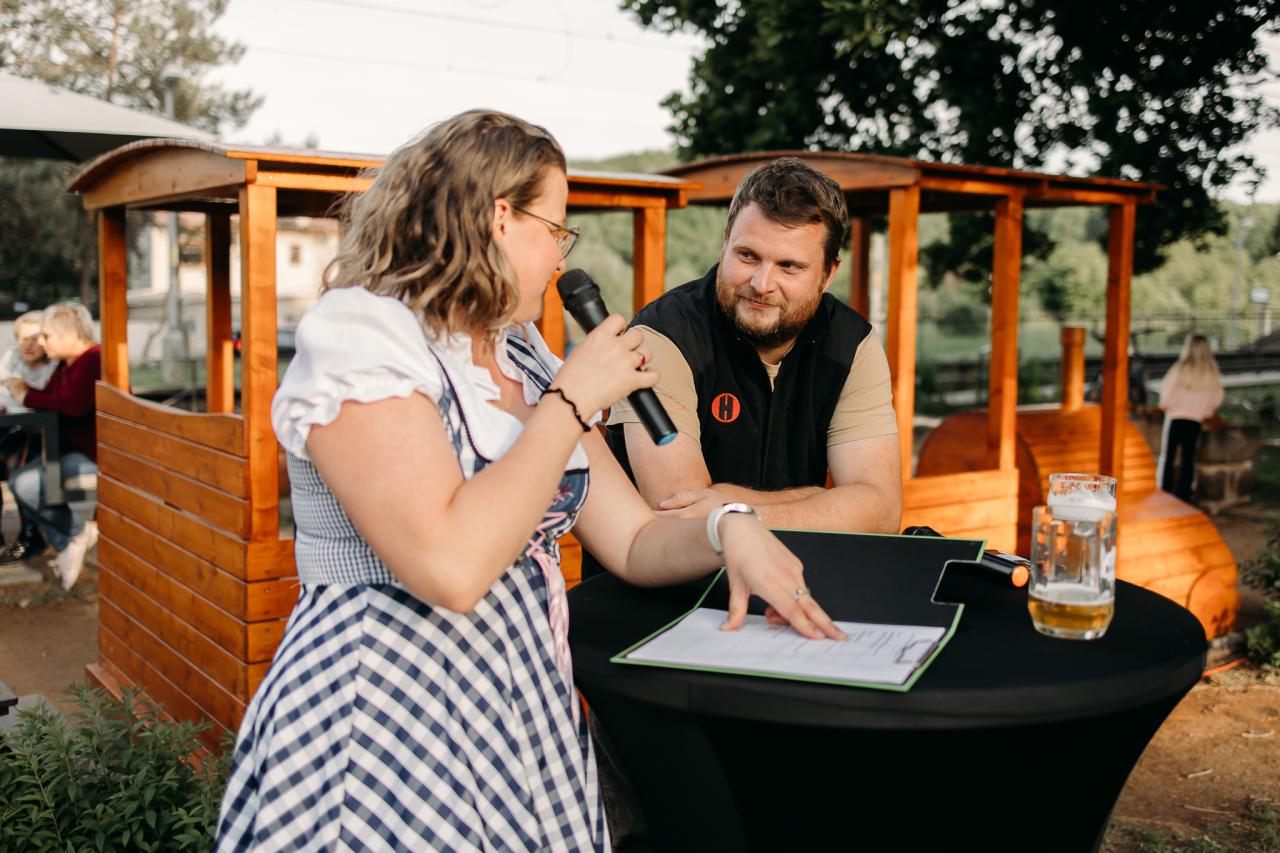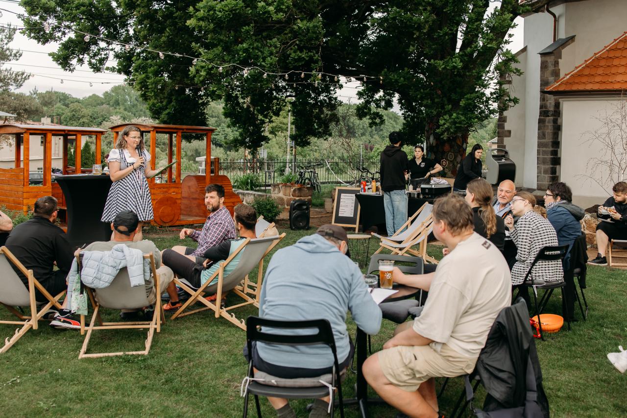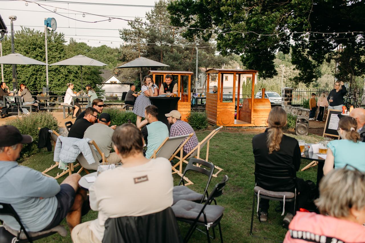 Pivní INFOKVÍZ s Františkem Poláčkem a Terkou Popkovou v Infocentru Nelahozeves 21. května 2025. Foto: Barbora Horká