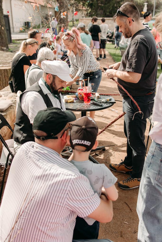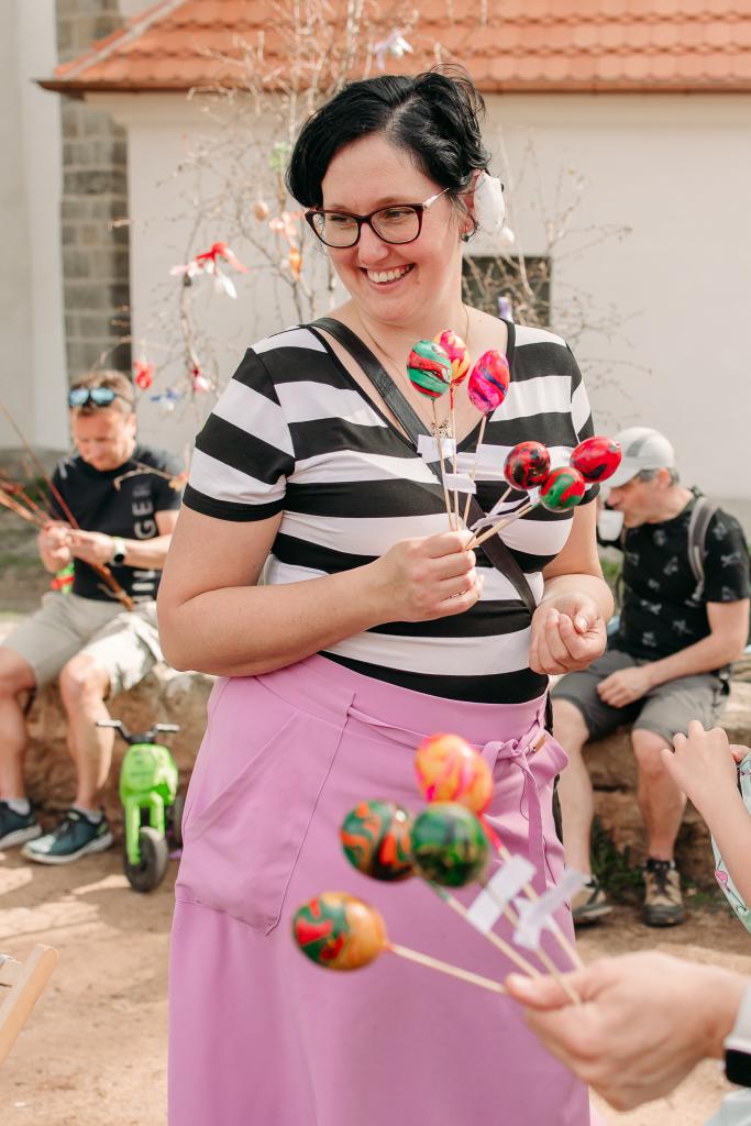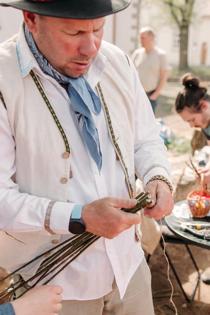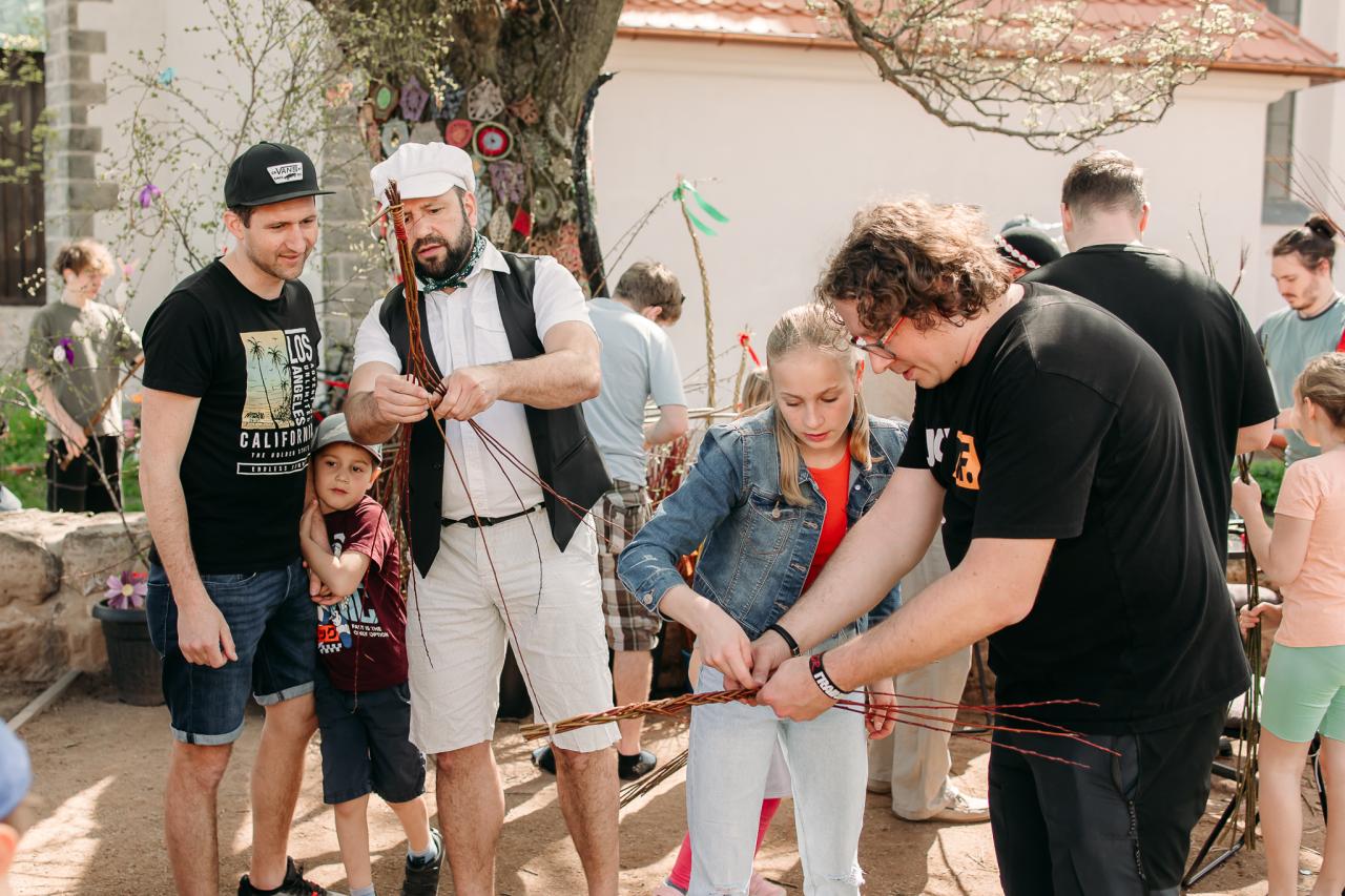 Pomlázkování v Infocentru Nelahozeves 20. dubna 2025. Pletení pomlázek a jarní tvoření.